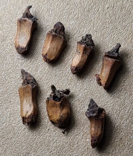 Gall. — In clusters from about fifty to one hundred on the trunks of young red and scarlet oaks (Quercus rubra and coccinea), immediately above the ground, in autumn. Hard and woody (when dry) probably soft when fresh, monothalamous. Oblong, narrower at base than at apex, which is flat. In form they are somewhat like square tubes or five or six-cornered tubes, giving them the appearance of cells of a honeycomb. Hollow inside and rather thin-walled. The fly emerges from the apex of the gall. Length, 5 mm. ; width of apex, 3 mm. ; diameter of cluster, 28 mm.